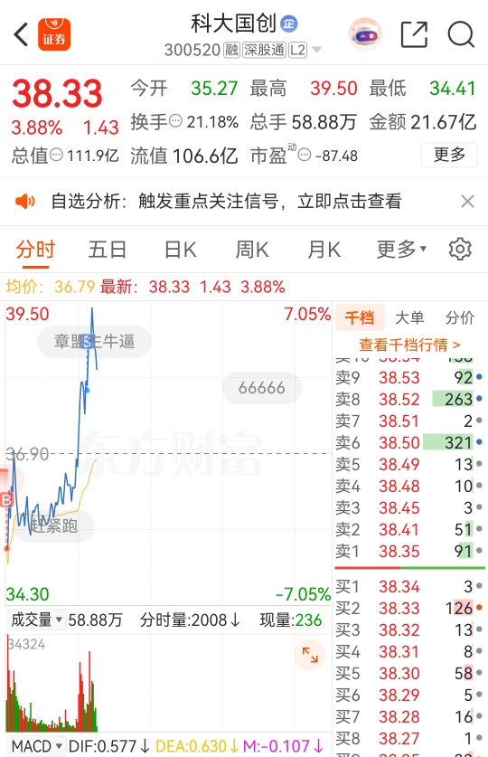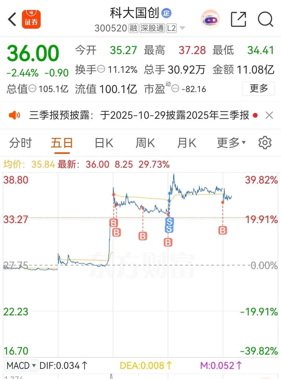 $科大国创(SZ300520)$二次拉升时,被大单连续砸盘给吓出来了,没能坚守到高点,预判了今天会新高,结果还是不够坚持,胆小了,今天做T浮盈8%