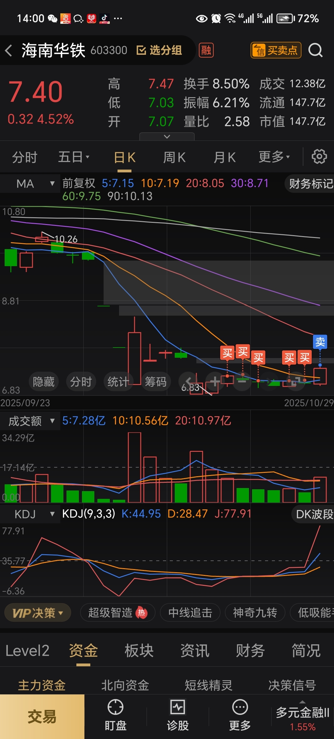 今日把这几天分批买入的$海南华铁(SH603300)$