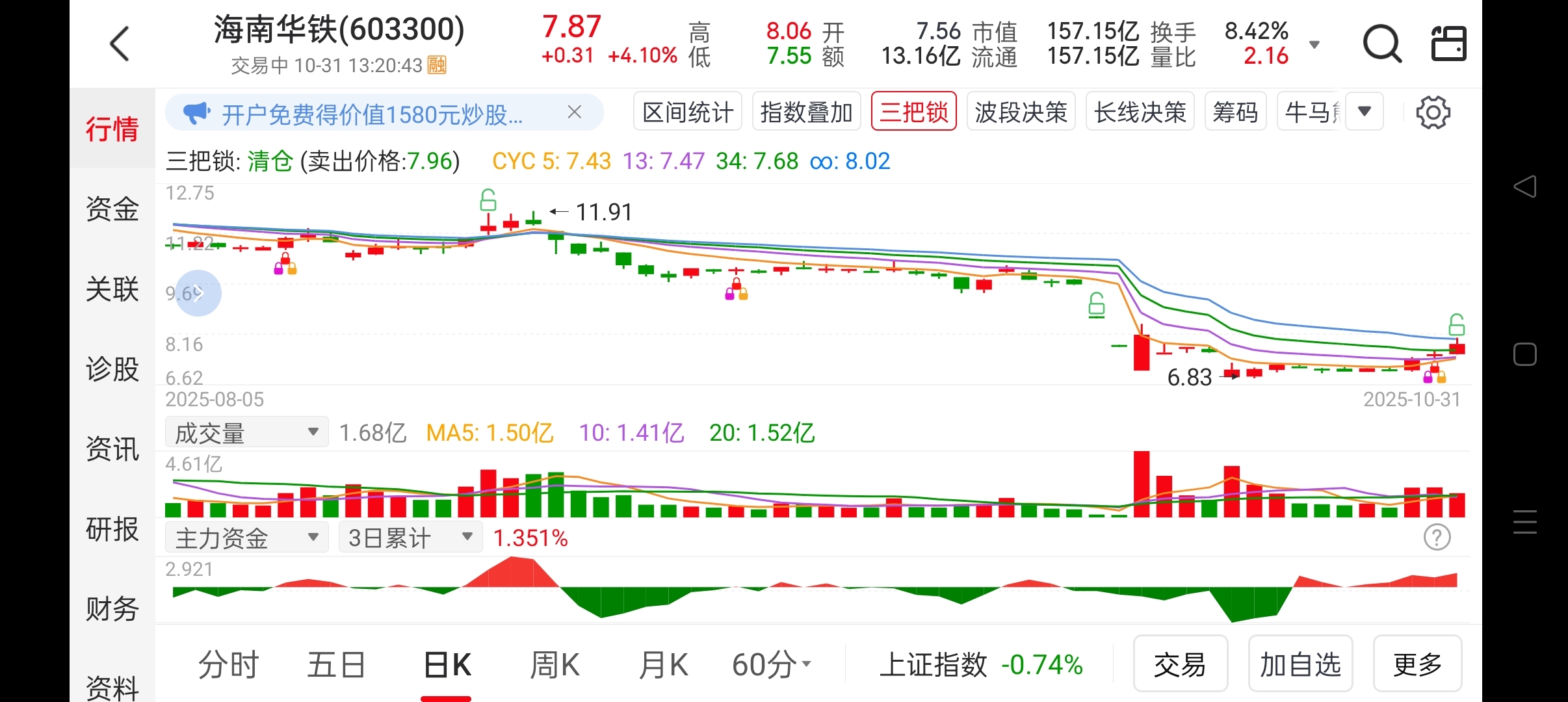 $海南华铁(SH603300)$ 三把锁叫你出货