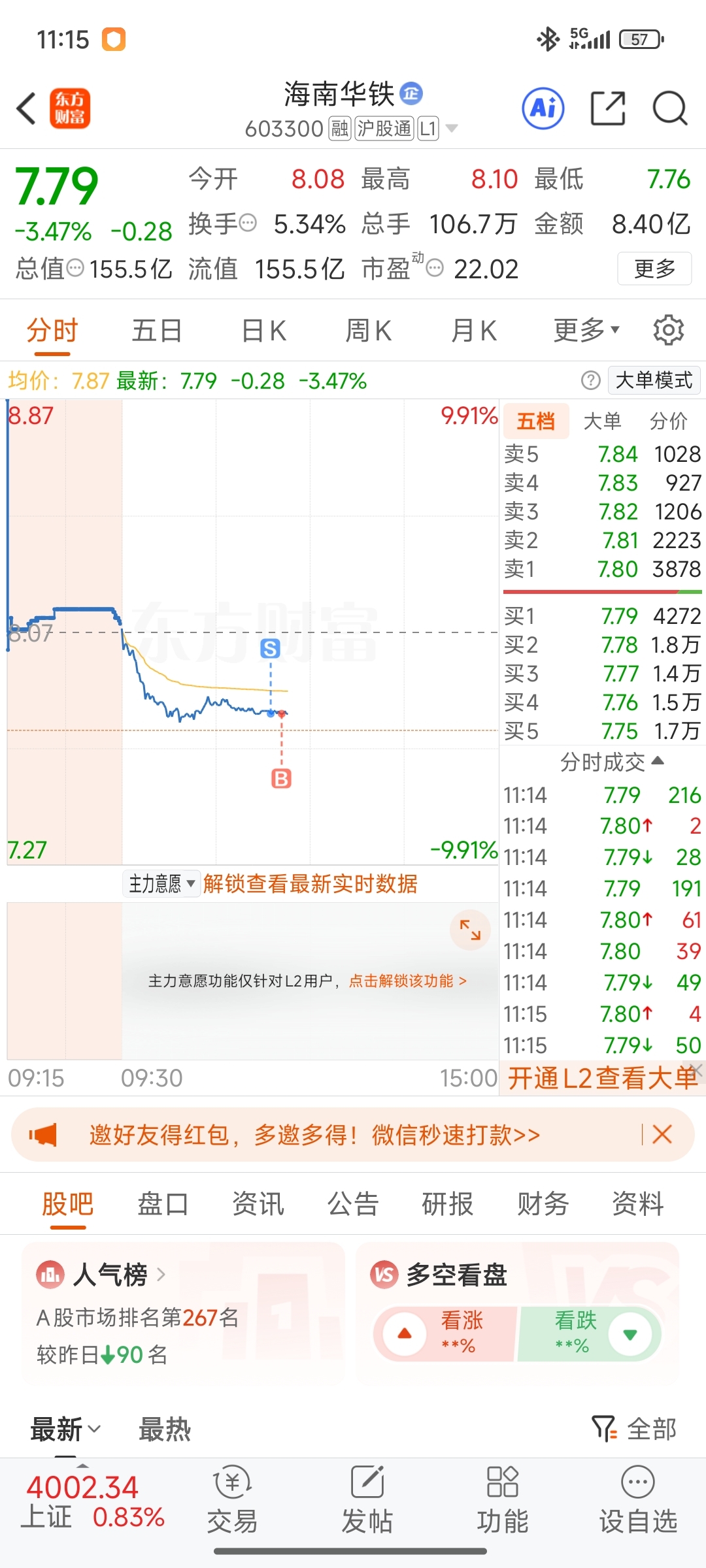 $海南华铁(SH603300)$ 买点点成卖点。又让我追回来了。