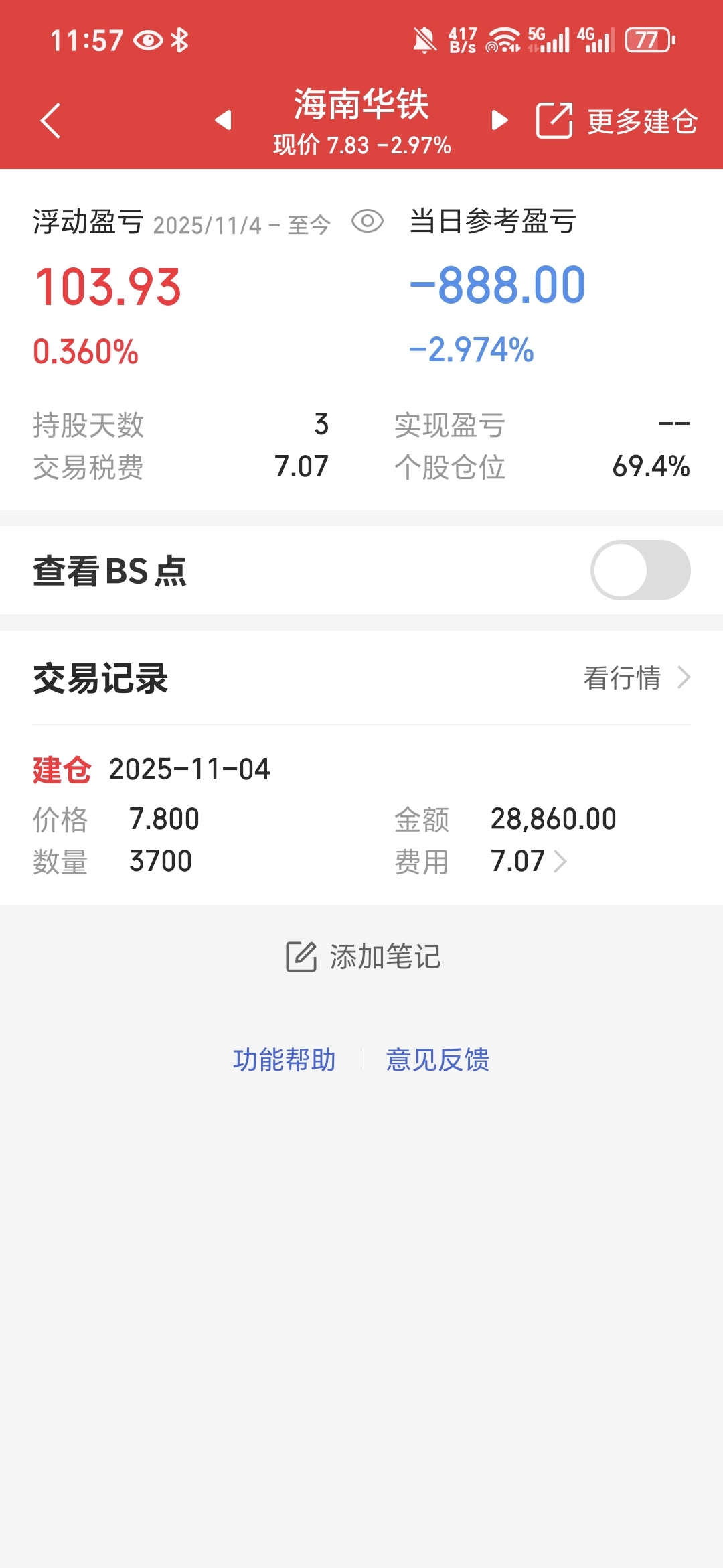 $海南华铁(SH603300)$ 以为今天能3个8,没想到是我亏3个8
