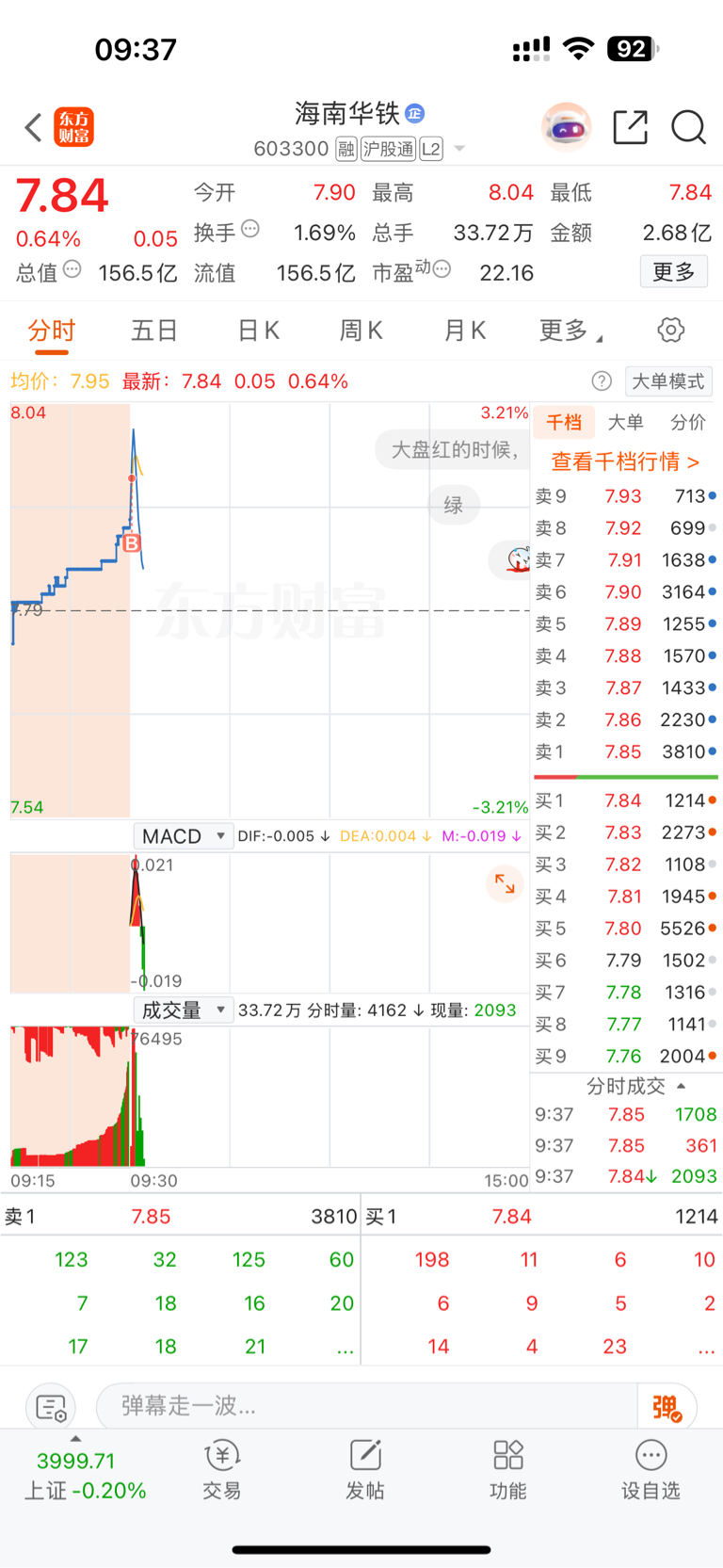 $海南华铁(SH603300)$ 对不起,我买了一手,好
