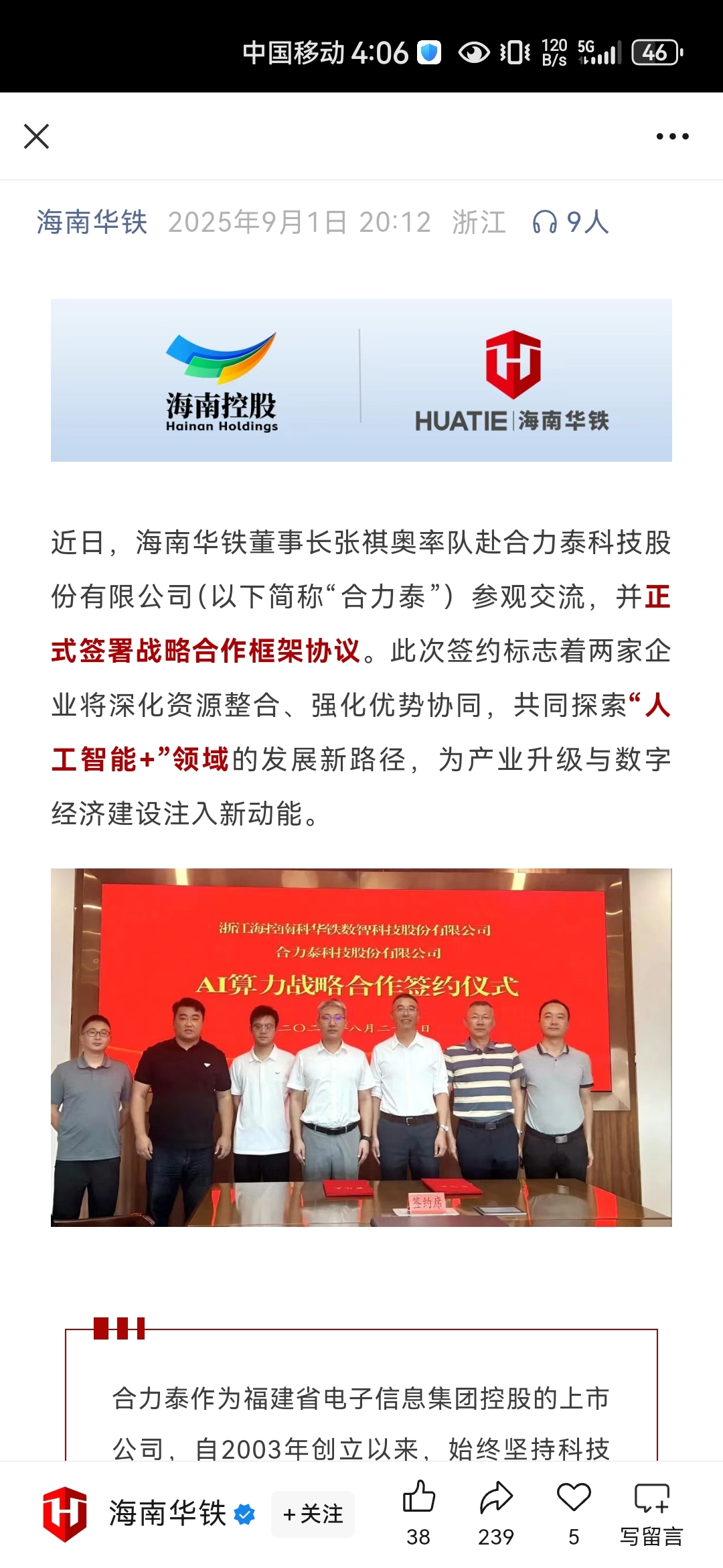 $海南华铁(SH603300)$