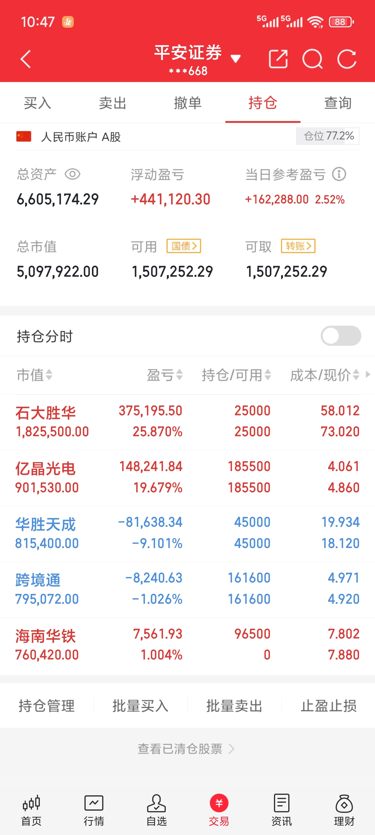 继续持有:$亿晶光电(SH600537)$ $石大胜华(SH603026)$