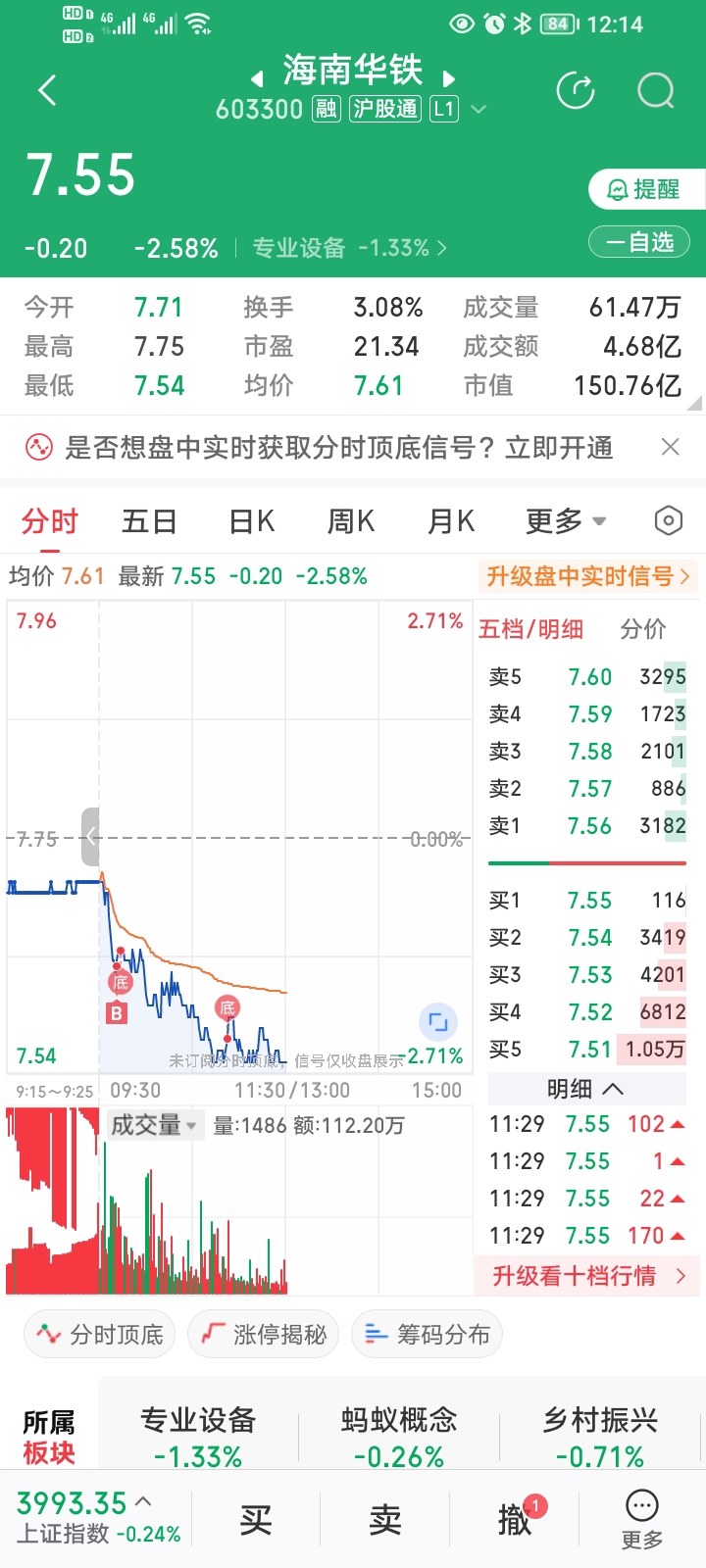 $海南华铁(SH603300)$ 今天收7块56,明天开盘再下探7块2下午收十字,礼拜五直接高开高走拉到8块,你们说能甩下多少人