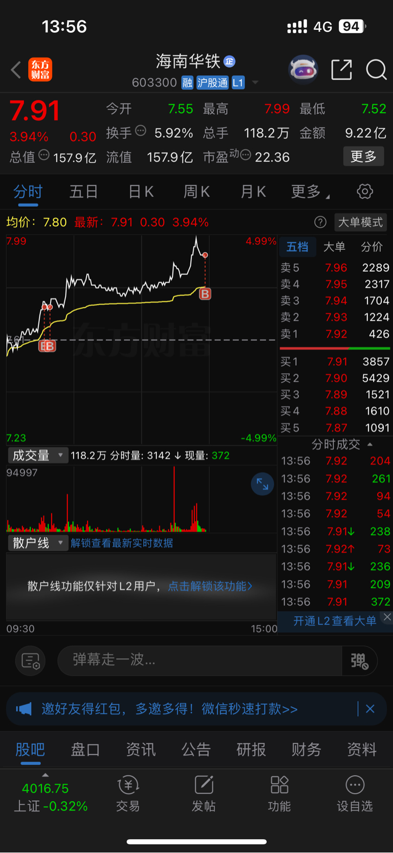 $海南华铁(SH603300)$ 兄弟们,来给你们接盘了