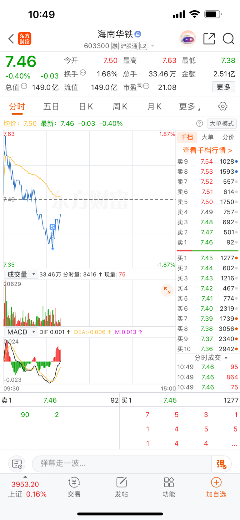 $海南华铁(SH603300)$ 我卖在最低点、你就起飞了