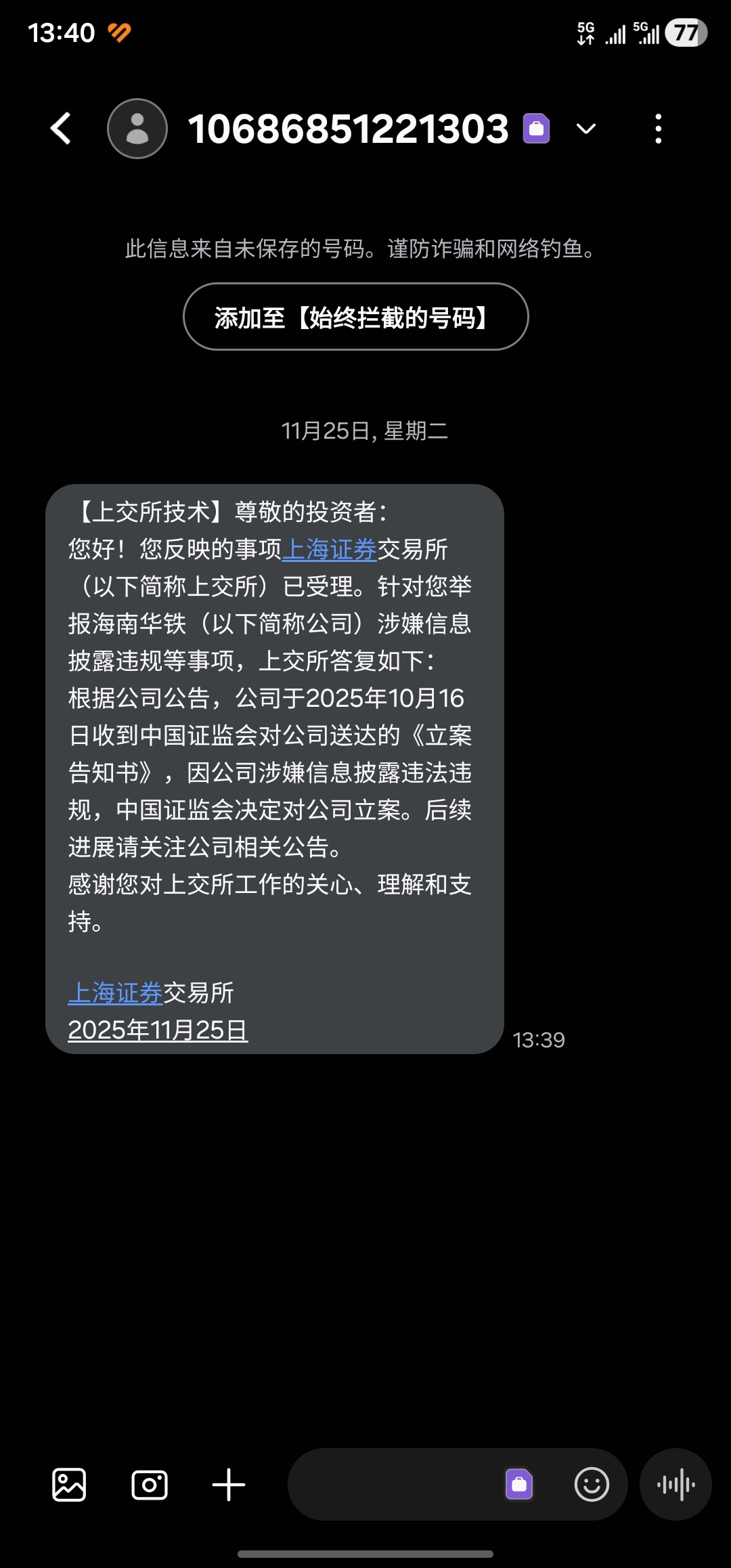$海南华铁(SH603300)$ 10月16日举报的披信违规,今天才回复确认