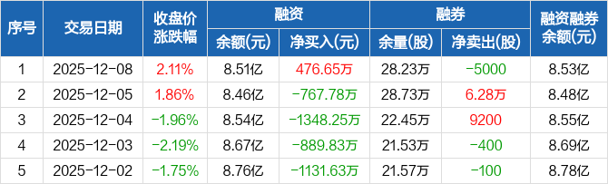 海南华铁:融资净买入476.65万元,融资余额8.51亿元(12-08)
