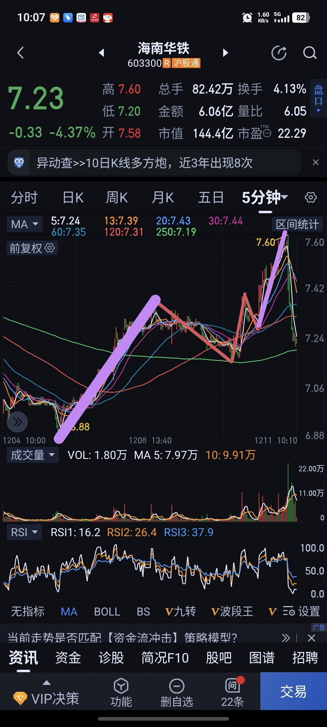 从这个上涨结构来说,上涨结束完全合情合理,因为上面紫色线段的上涨幅度比下面紫色线