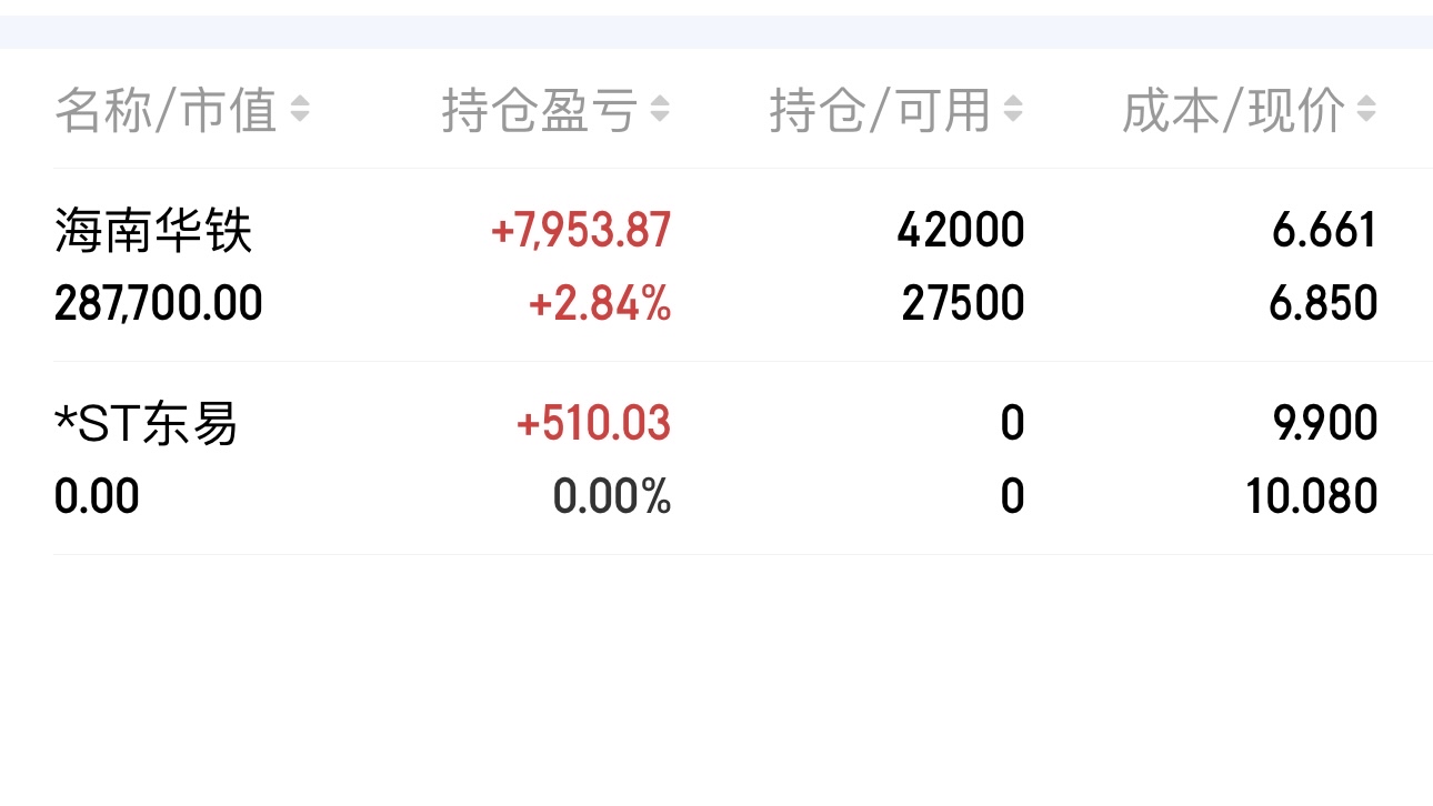 $海南华铁(SH603300)$ 13号跌停价买14号卖赚了1.6万清仓。17号跌停价买,做了18天T,盈利2.7万没有清仓,后期加仓了,又加仓,2.7万盈利剩7000多了,大家不要卖,假如后期大家会回本,我一定赚到满满。现在和大家一起共同持股,别卖。后面我还会加仓的