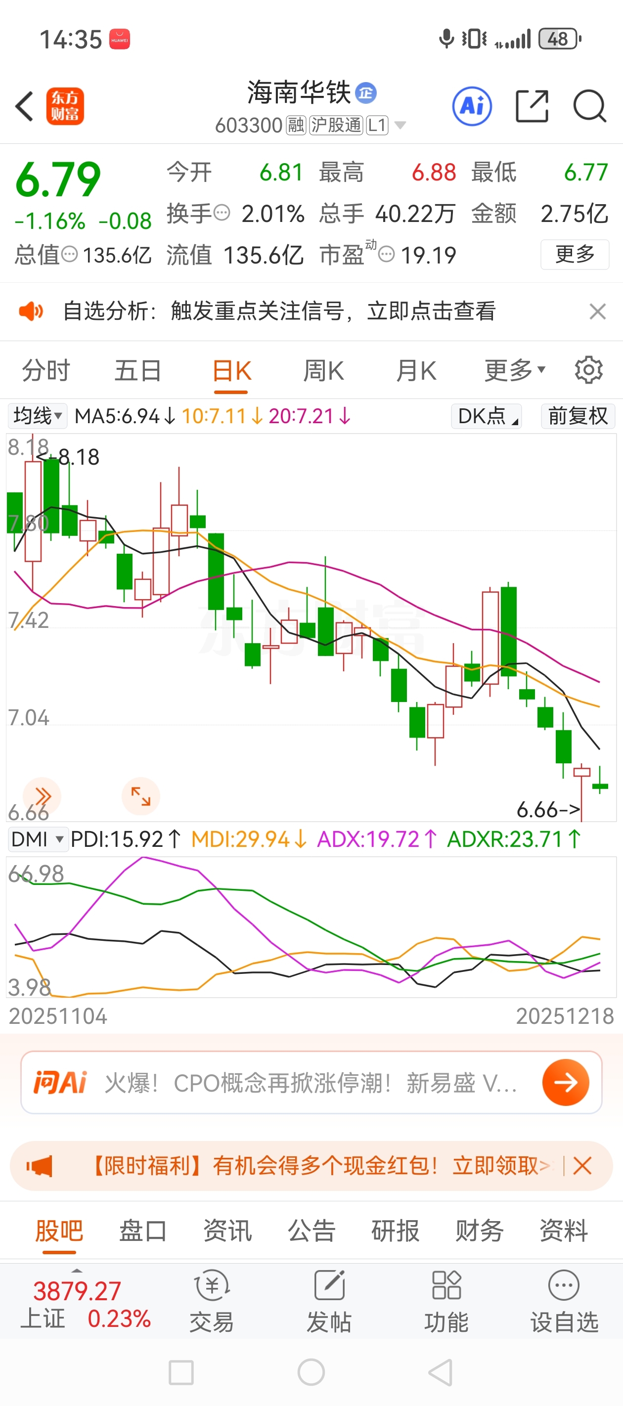 $海南华铁(SH603300)$ 日线开口很大,要有交叉口得连续涨几个,月线一直口子很大,长期不好看