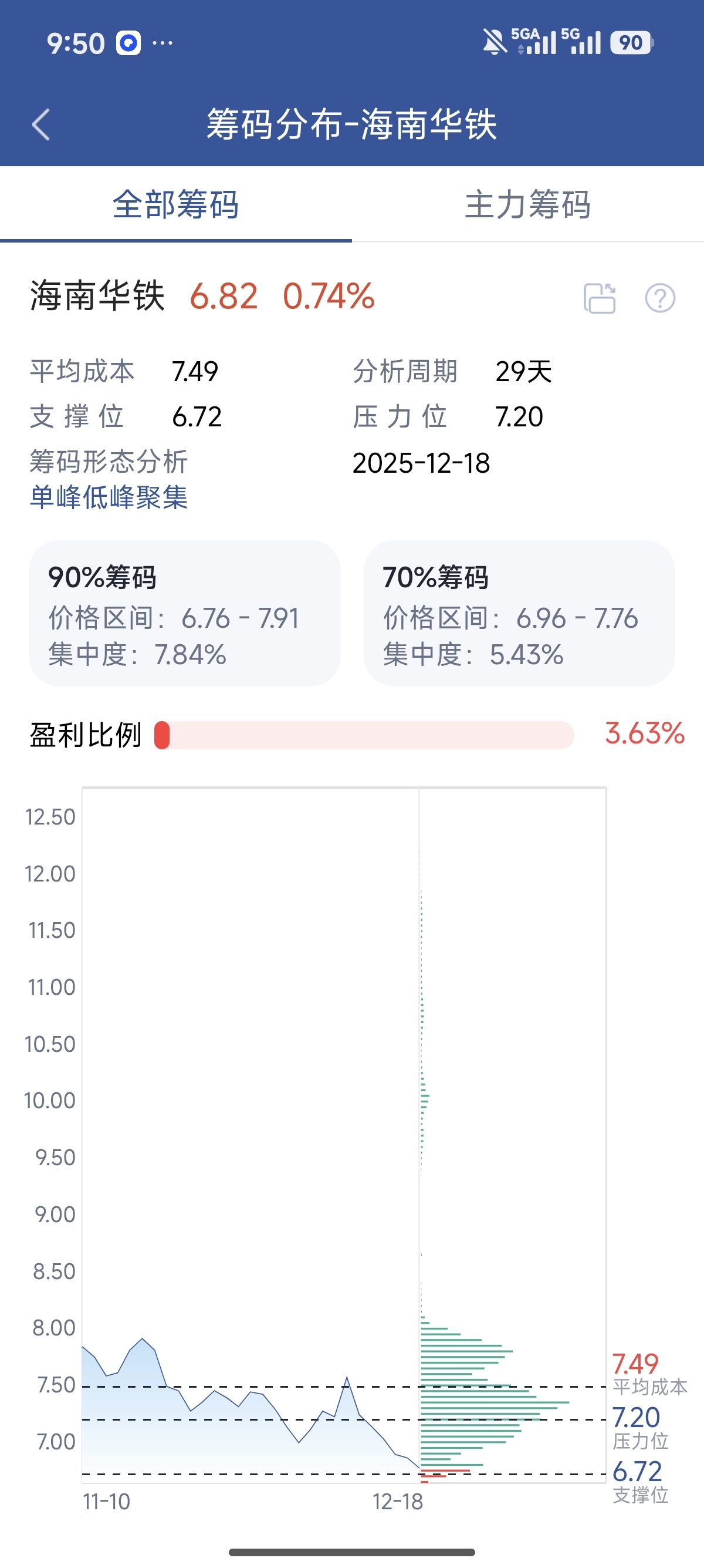 $海南华铁(SH603300)$ 筹码集中可以拉了