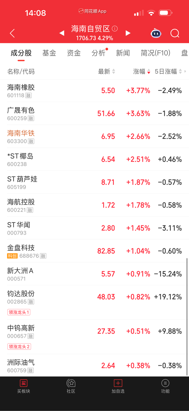 好熊,熊了1年了,海南自贸区大涨,超大涨,熊,榜尾