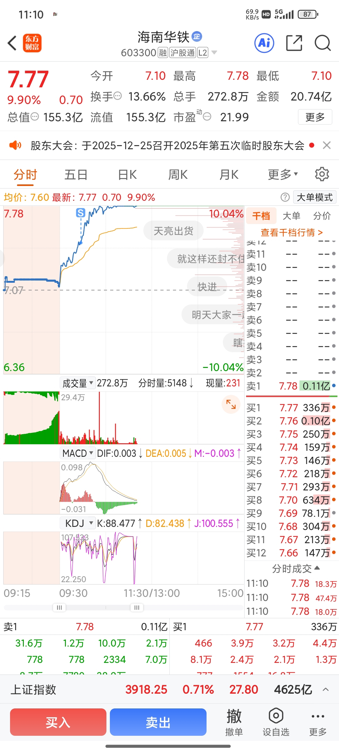$海南华铁(SH603300)$ 哎,果然少赚就是亏