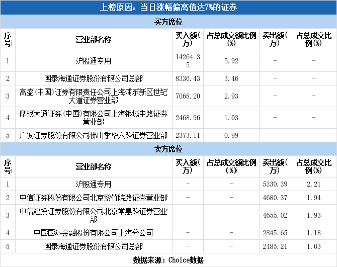沪股通现身龙虎榜,海南华铁涨停(12-22)