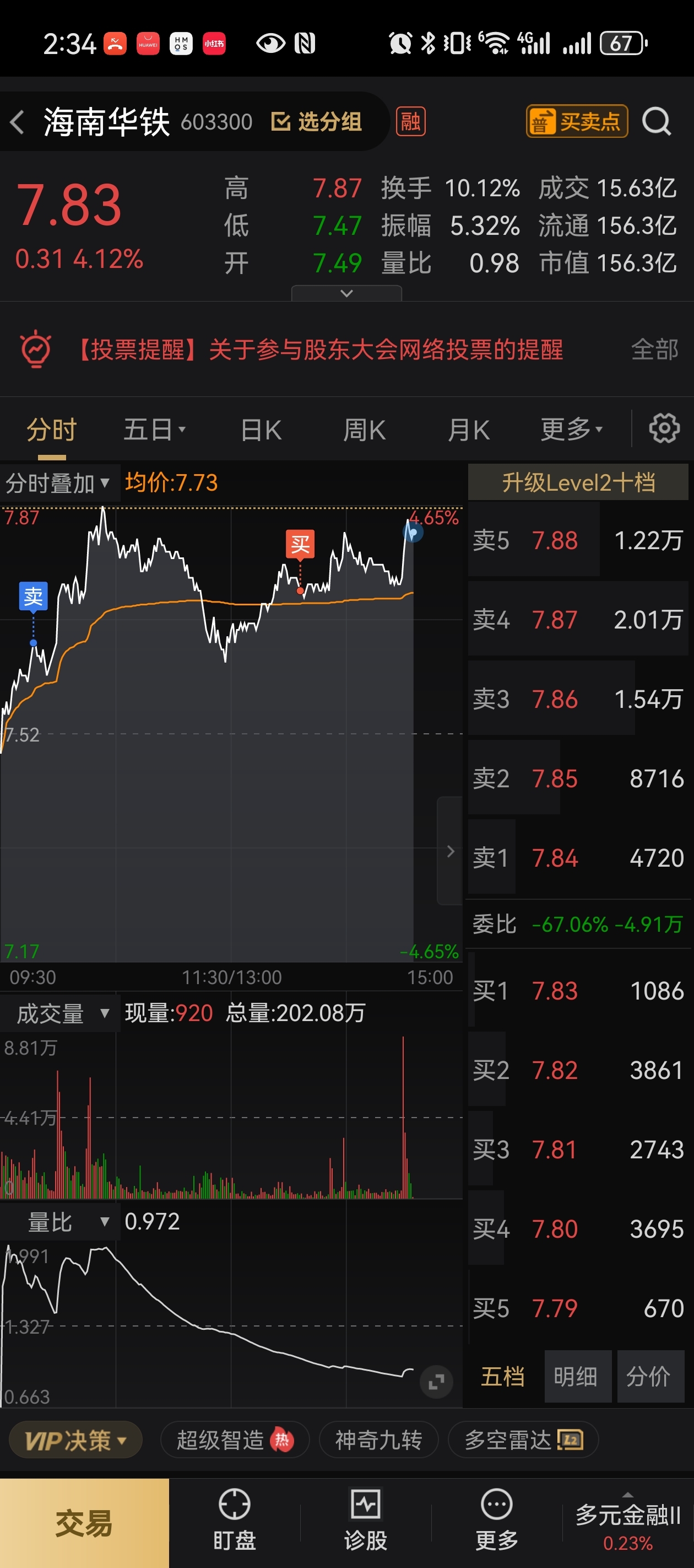 $海南华铁(SH603300)$ 好久没做反套了,今天来了一个