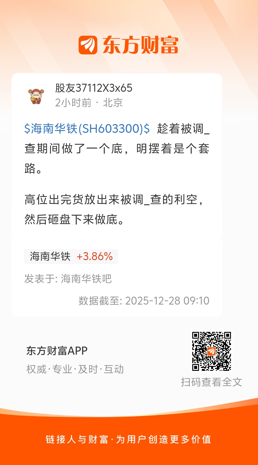 $海南华铁(SH603300)$  趁着被调_查期间做了一个底,明摆着是个套路。