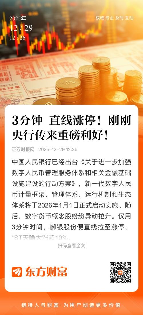 随后,央视新闻报道称,据中国人民银行,中国人民银行已经出台《关于进一步加强数字人民币管理服务体系和相关金融基础设施建设的行动方案》,新一代数字人民币计量框架、管理体系、运行机制和生态体系将于2026年1月1日正式启动实施。