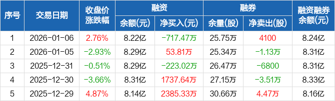 海南华铁:融资净偿还717.47万元,融资余额8.22亿元(01-06)