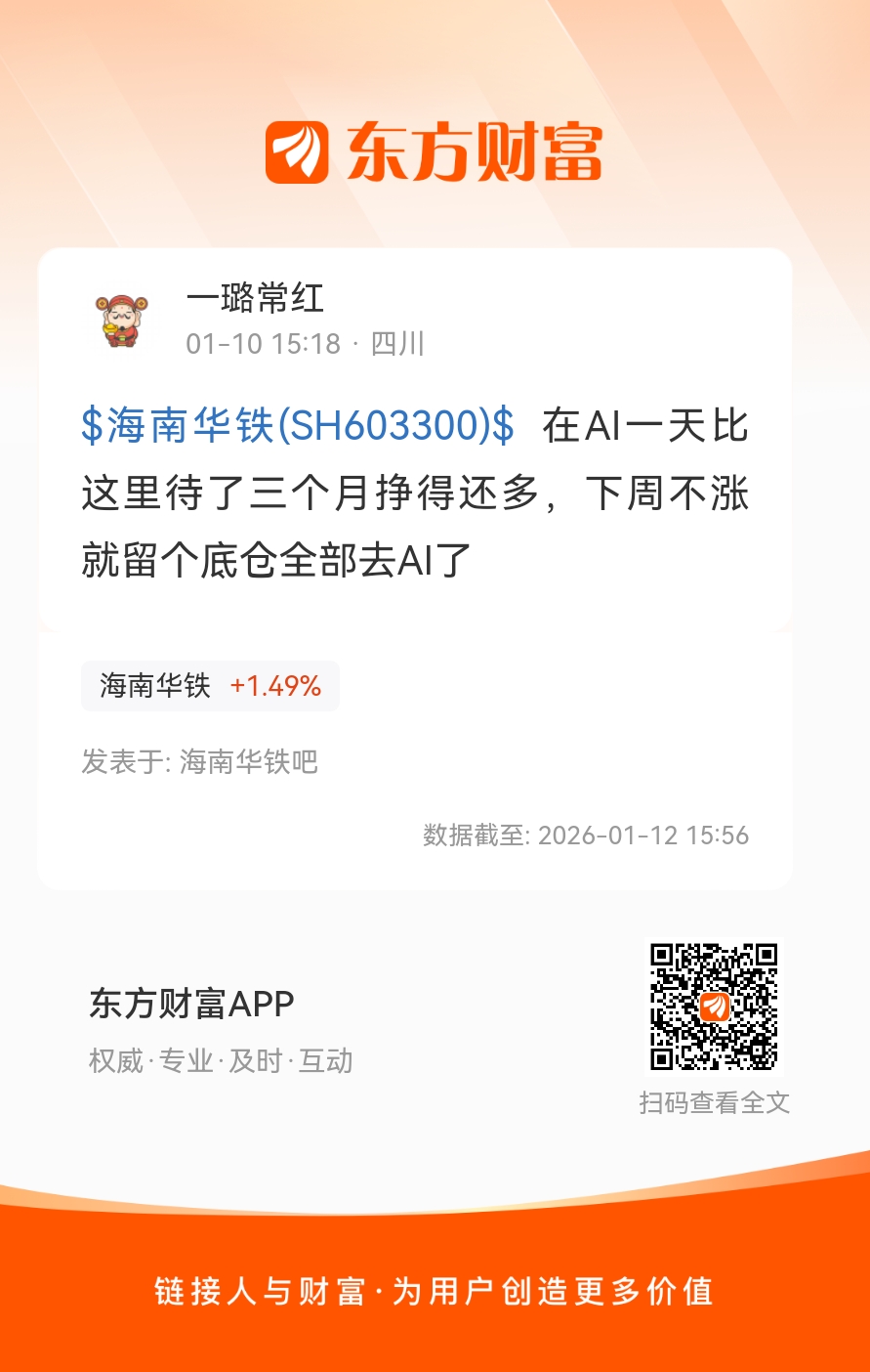 $海南华铁(SH603300)$  在AI一天比这里待了三个月挣得还多,下周不涨就留个底仓全部去AI了