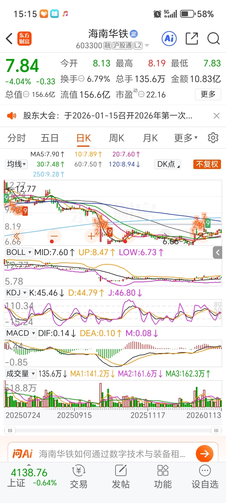 今天差一点没能买进的准油股份强势涨停!今天差一点没有卖掉的海南华铁跌4个点!1月