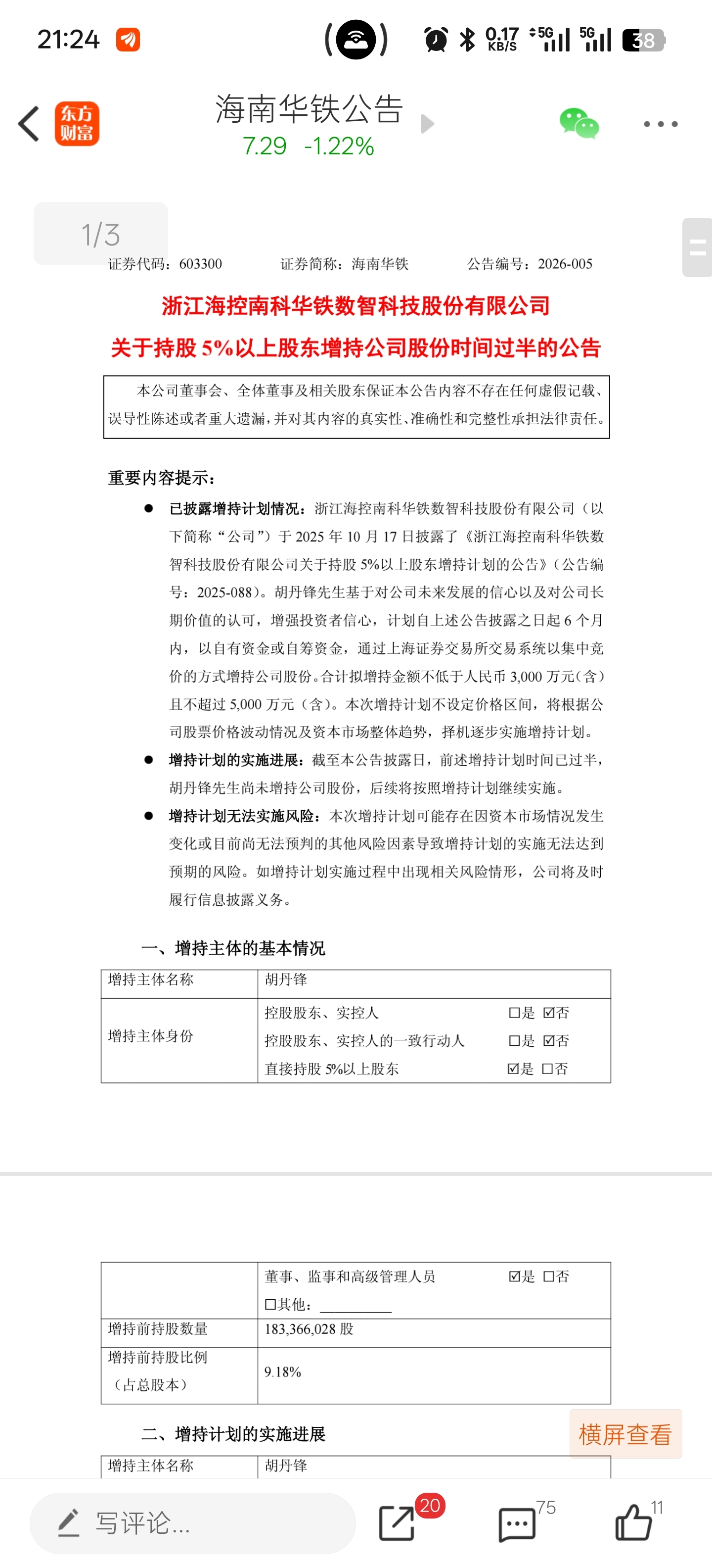$海南华铁(SH603300)$ 自从10月1日暴跌,时不时的回来看一看。有一段时间没回来了,一看公告挺有意思。当时维稳的竟然有点饼的意思。时间过半,一股没增。
