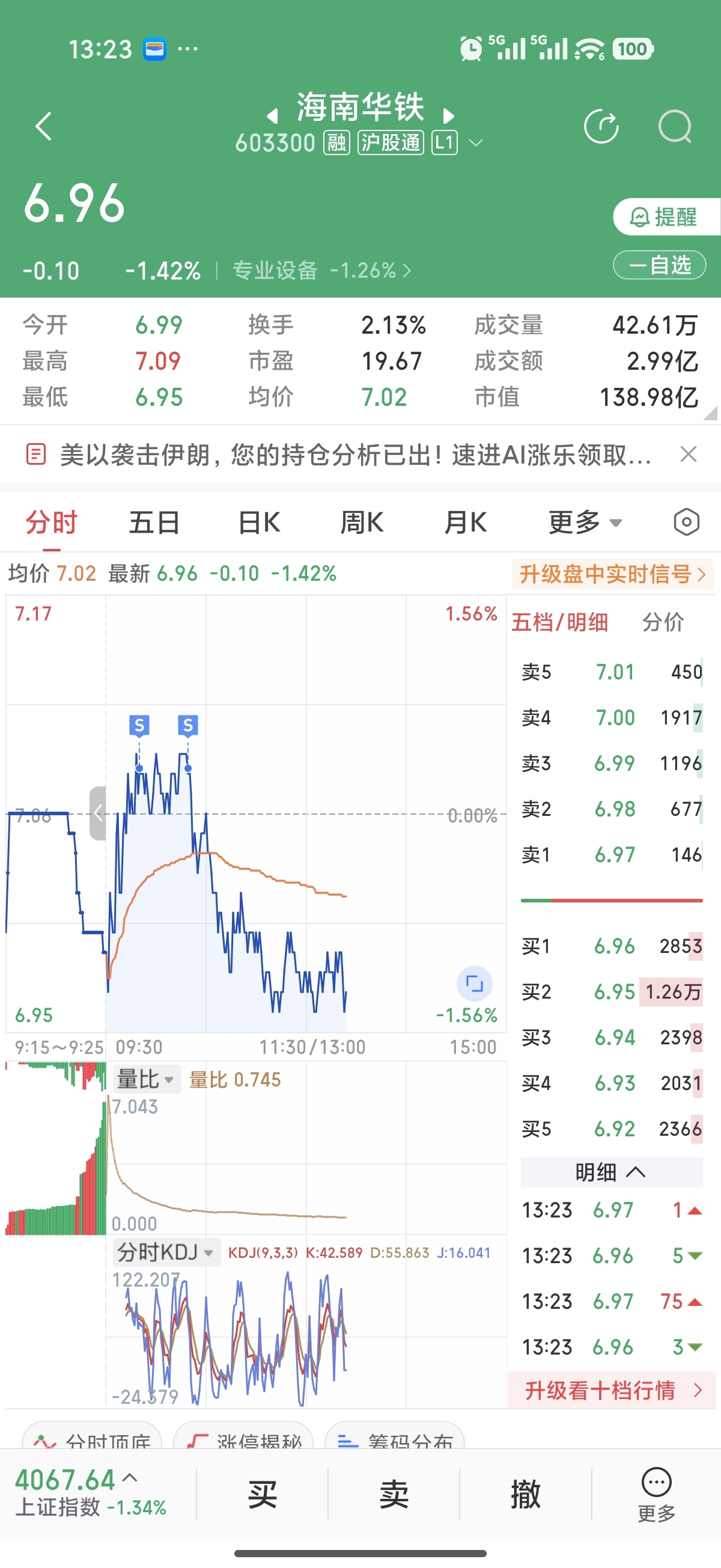 $海南华铁(SH603300)$ 惹不起你!开盘就T出来4万股