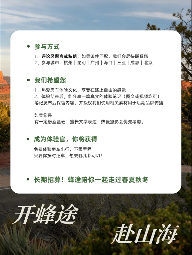 华铁招募:房车体验官开蜂途,赴山海房车旅行、0元体验、诗与远方活动地点:小*书