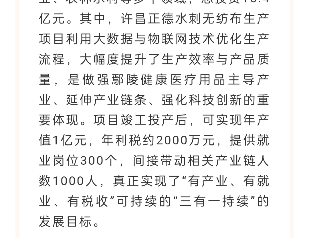 $振德医疗(SH603301)$ 振德医疗在许昌新建水刺无纺布的生产线,这类产品和$稳健医疗(SZ300888)$ 的全棉时代差不多,不过好像公开报道会增加1亿产值,会有更大的市场空间吗,好像水刺无纺布市场需求特别火,值得期待。$中航成飞(SZ302132)$