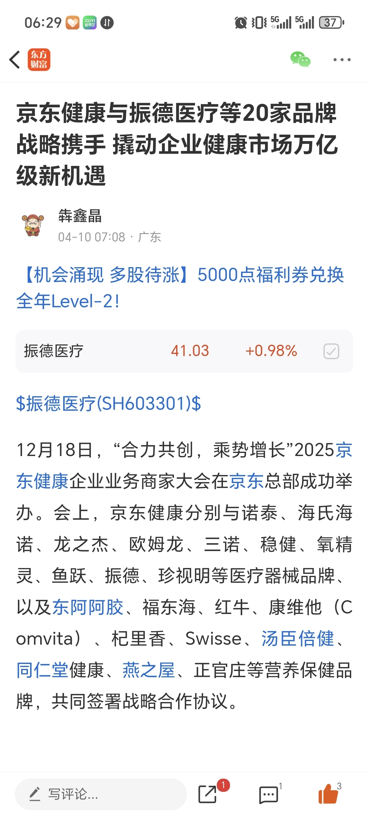 $振德医疗(SH603301)$ 跟着犇鑫晶老师一起吃肉的小伙伴还在吗?在的话关注点起来