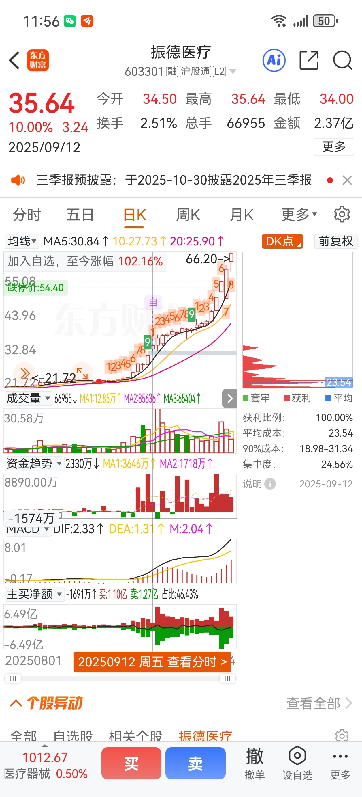 $振德医疗(SH603301)$ 天天涨,最近半个月翻倍。谁敢买呀