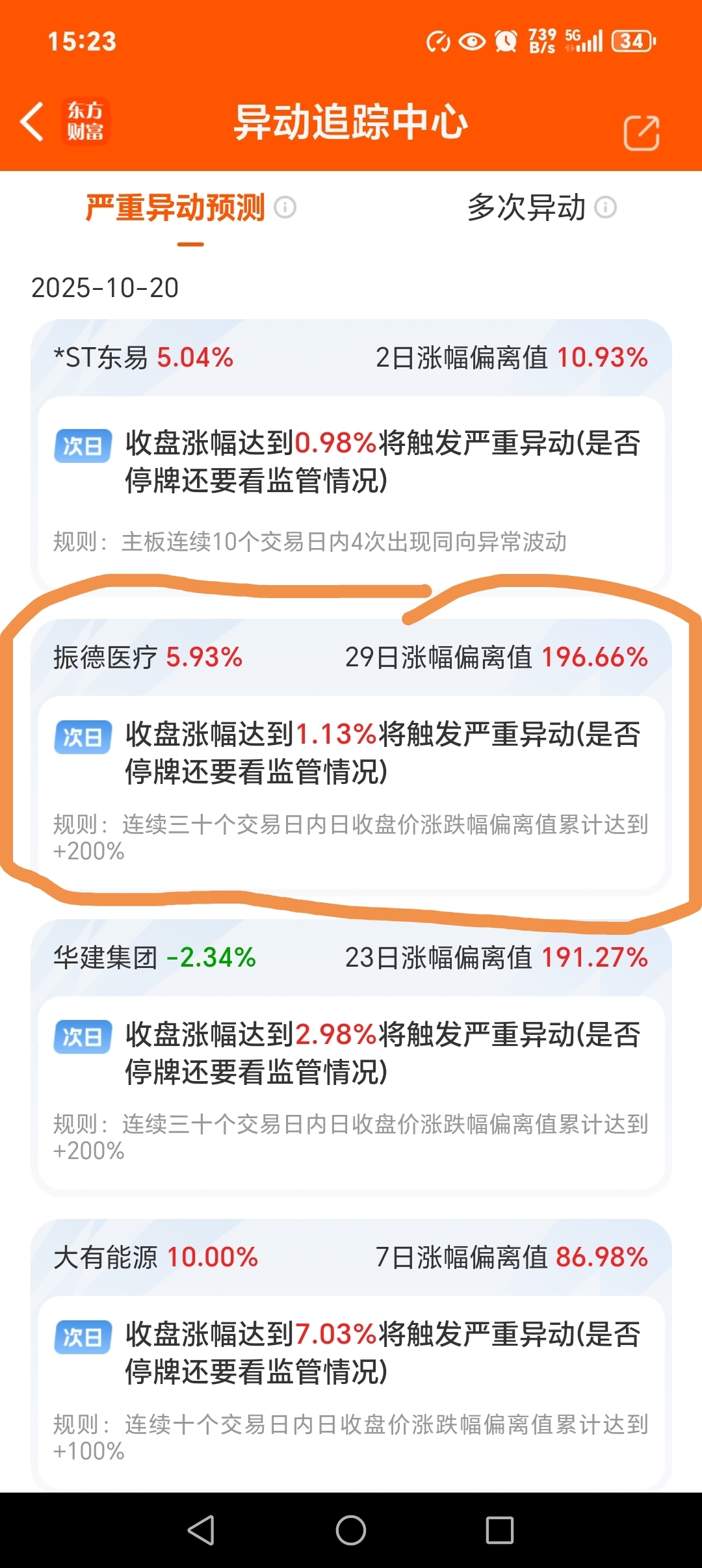 明天收盘涨1.13%就是严重异动了,所以尽快离开振德,方为上上策。