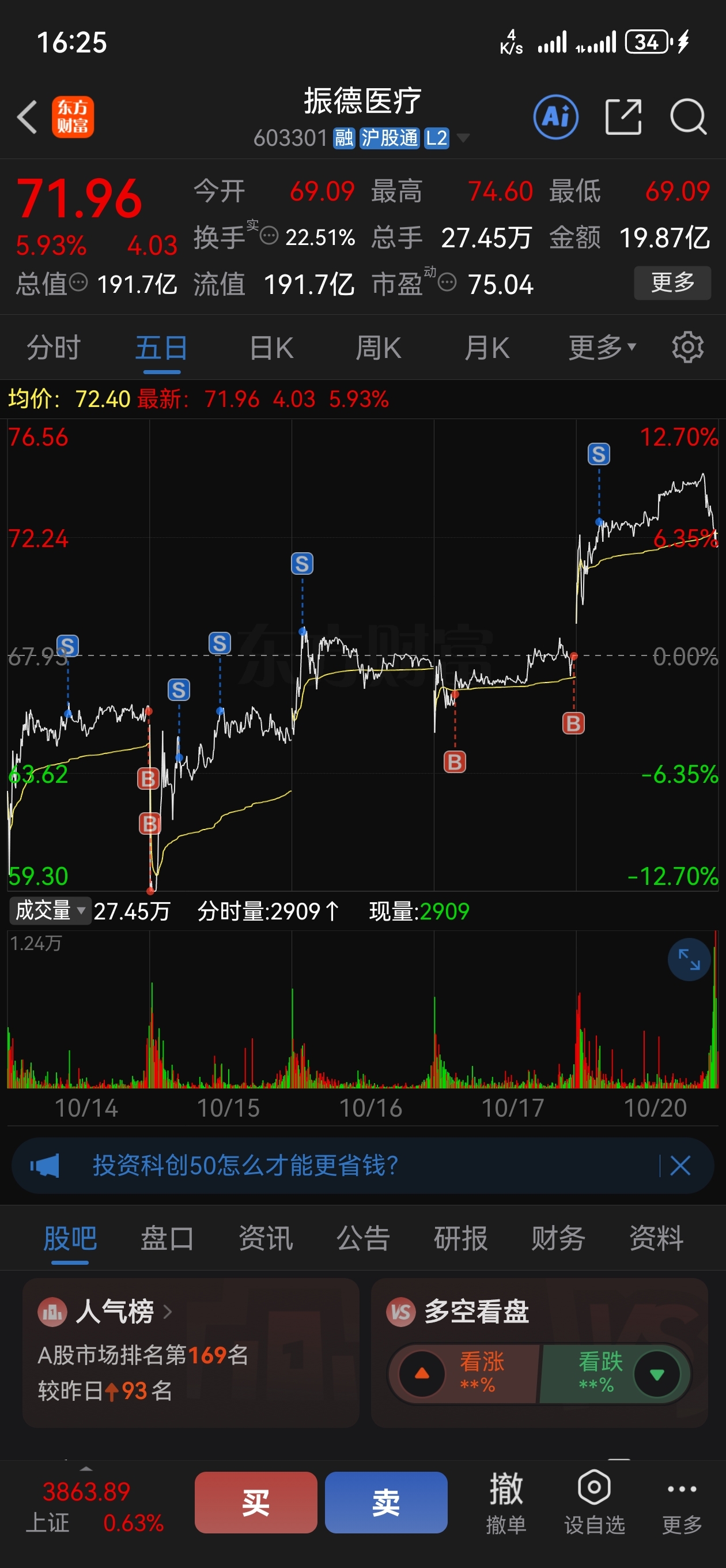 $振德医疗(SH603301)$ 明天再来深水低吸。
