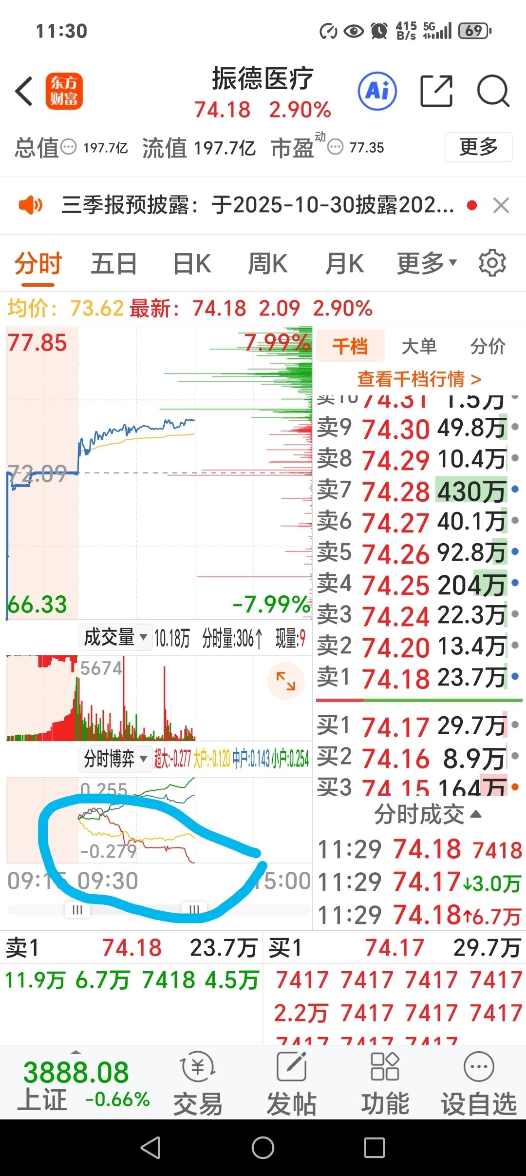 $振德医疗(SH603301)$ 主力一直在下拉控盘,看下面截图蓝圈中红色主力走势。