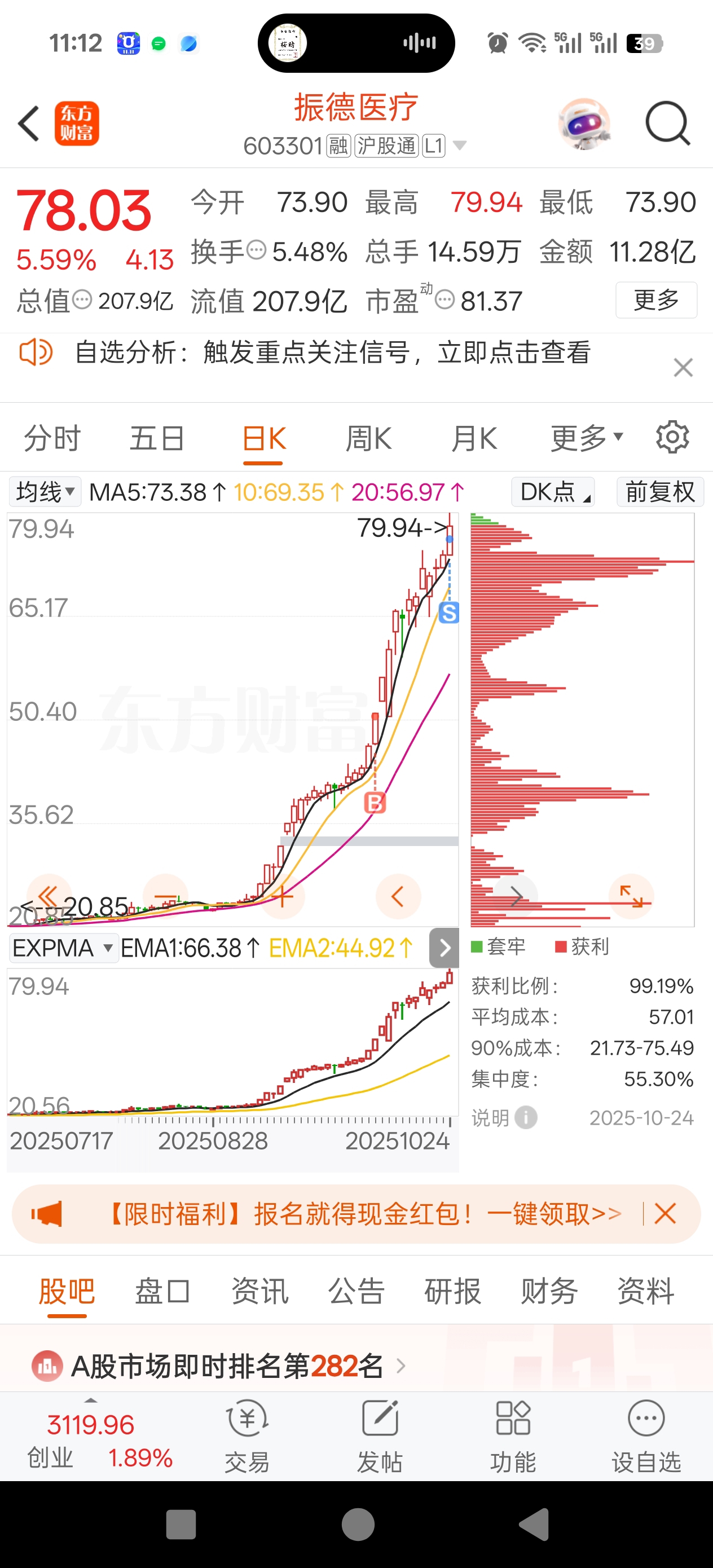 $振德医疗(SH603301)$ 不知道有没有卖飞,获利接近50个点全清了,但是有一点可以确认只要达到严重异动的股票,基本没有多少涨幅高度了,运气差点就会变成华建这个样子闷杀今天还是周五先出来了,如果尾盘打下来控住了异动,考虑在接回来