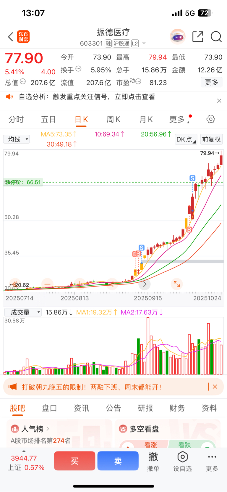 $振德医疗(SH603301)$ 参与了也没用,是我把持不住的大哥
