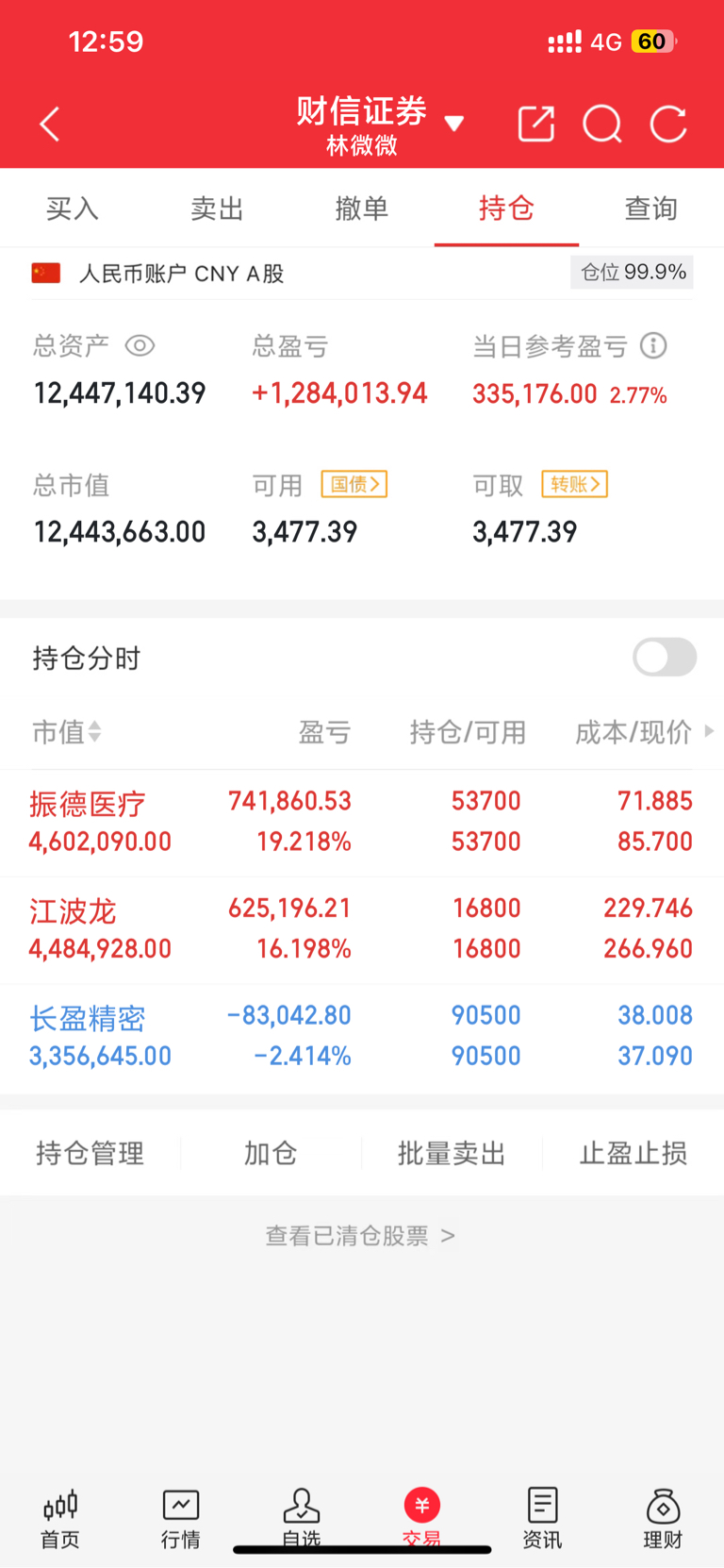 继续持有 $振德医疗(SH603301)$ $江波龙(SZ301308)$ $长盈精密(SZ300115)$ 这三支具备增长潜力,我满怀期待,相信随着后续市场的发展,达成盈利目标。