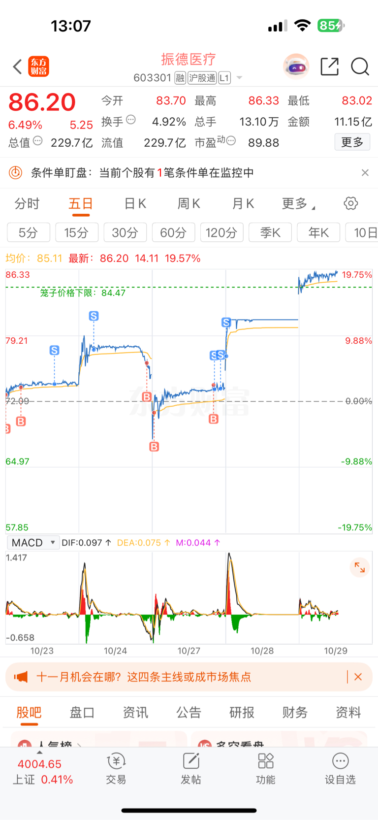 $振德医疗(SH603301)$ 我拿着你天天控盘异动,一卖掉你就涨停,气我呀!