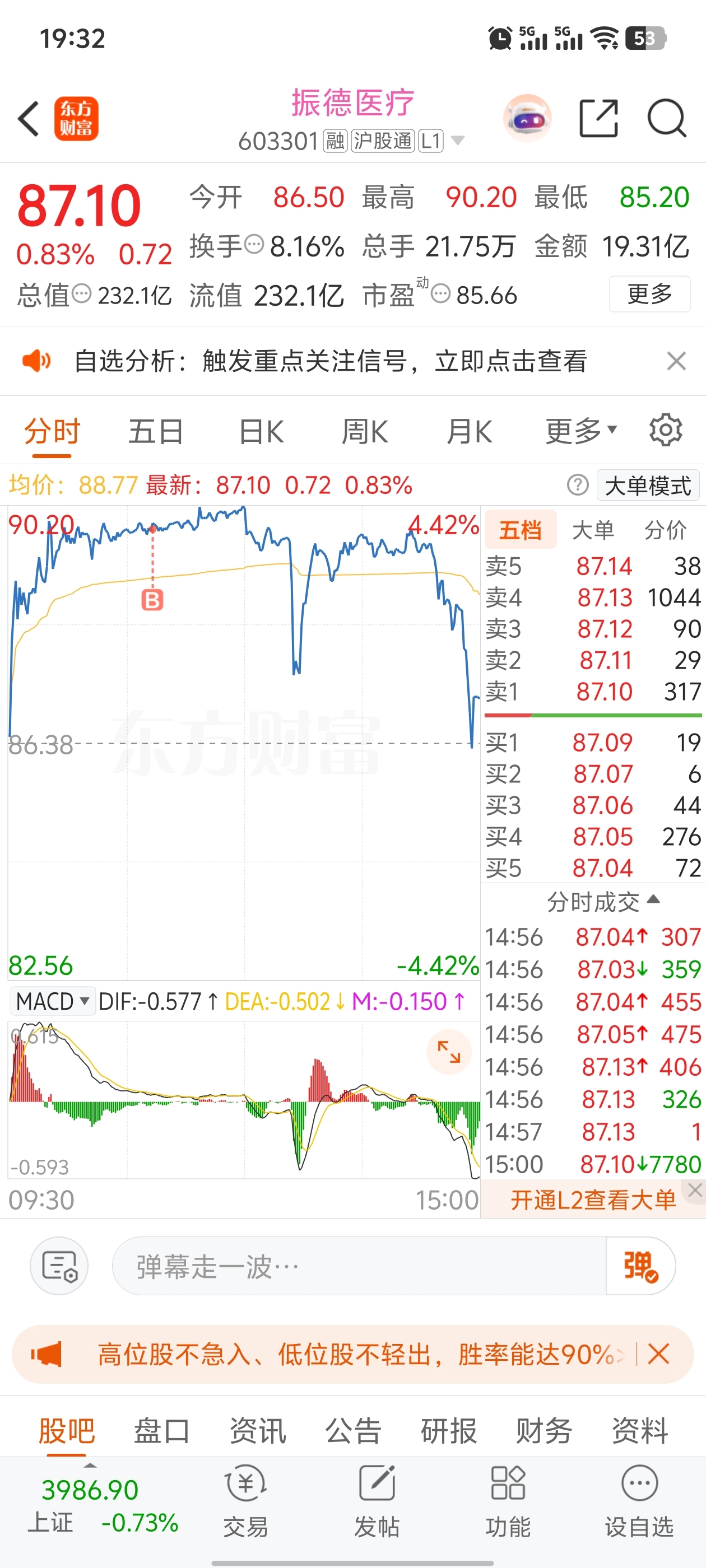 $振德医疗(SH603301)$ 果然给我买崩了,我只要一买就跌,一卖就涨!