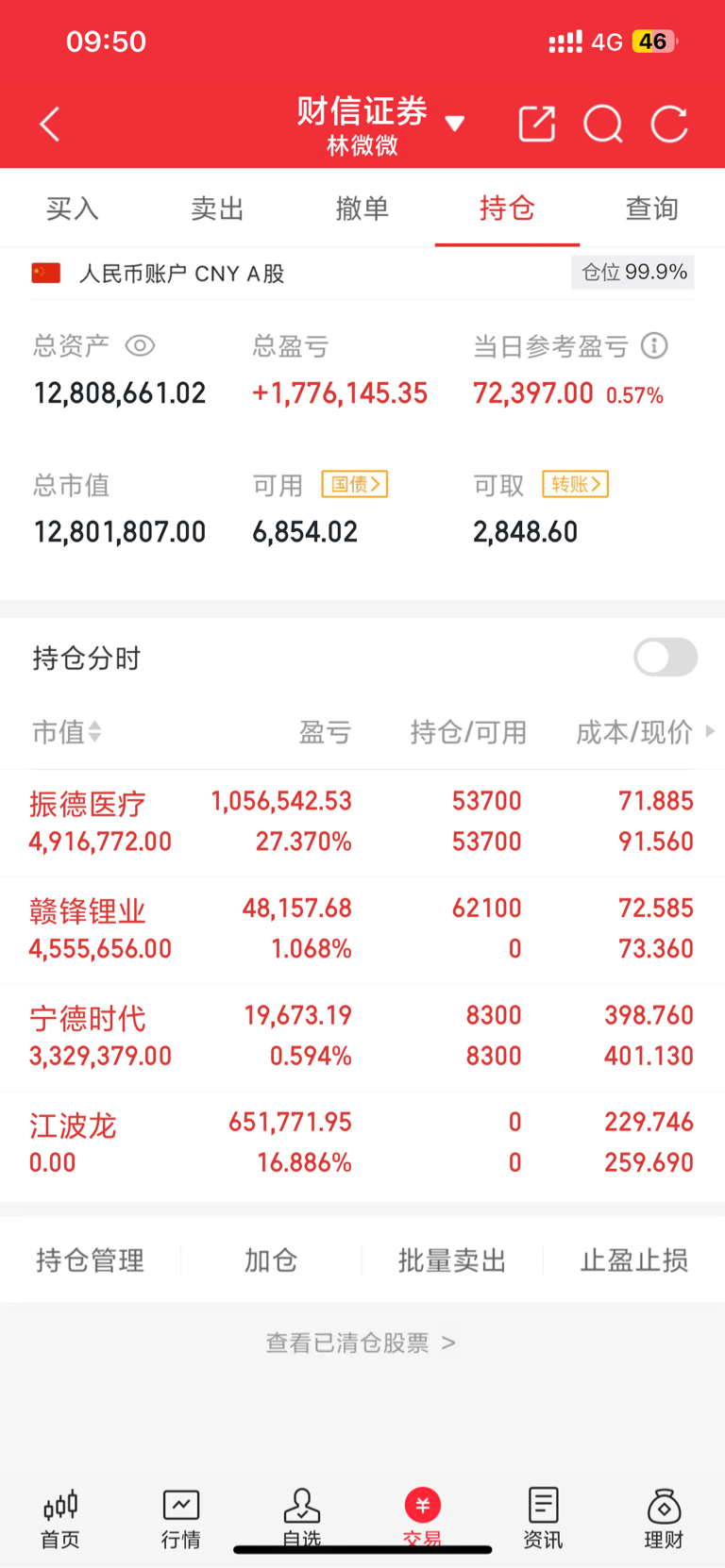 继续持有 $振德医疗(SH603301)$ $宁德时代(SZ300750)$ 这两支具备增长潜力,我满怀期待,相信随着后续市场的发展,达成盈利目标。
