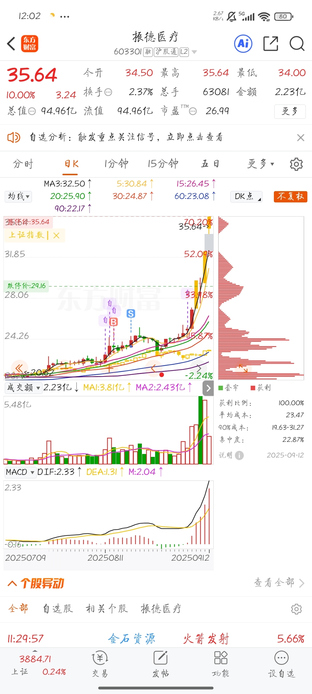 $振德医疗(SH603301)$ 眼睁睁看着上去的