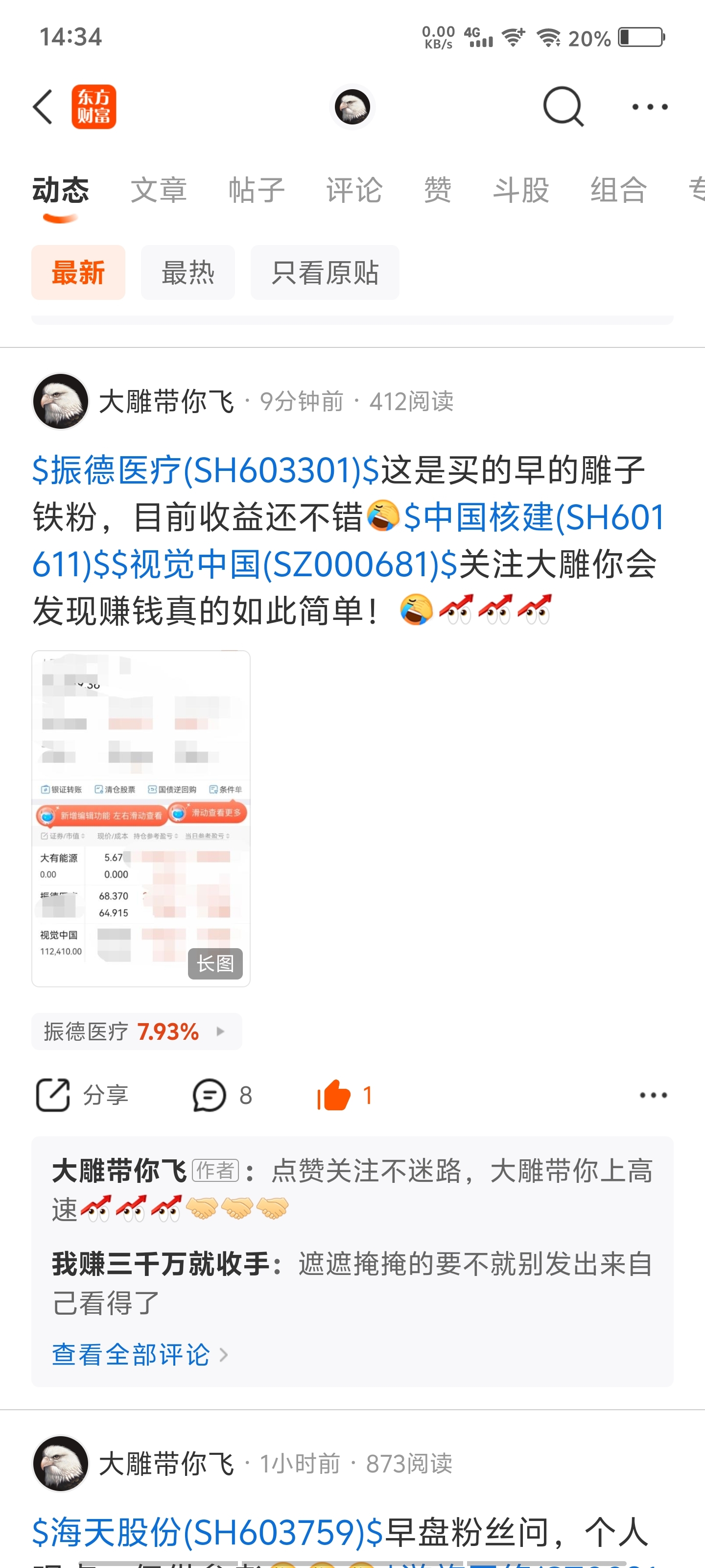 $振德医疗(SH603301)$ 还在羡慕振德医疗大趋势牛股一路向上吗?大雕专注趋势牛股,振德医疗已经收益超50%以上!目前已经发现多个同类型趋势牛股了,如果今天关注与点赞破200,我将发文全部整理与总结!一个点赞一个涨停!