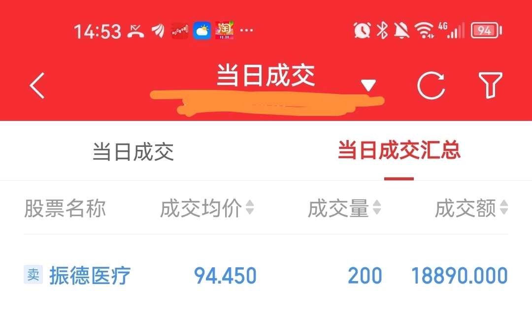 200股赚1600块钱,咱不贪心哈!……各位小主,笨手指说过的,大家要跟作的话,尽量买的比我便宜,卖的比我价高就好!当然,短线风险巨大,出手必须严格控制剂量!振德今天的最低价,是低于我昨天买的价格的!个人操作,仅供参考哈!