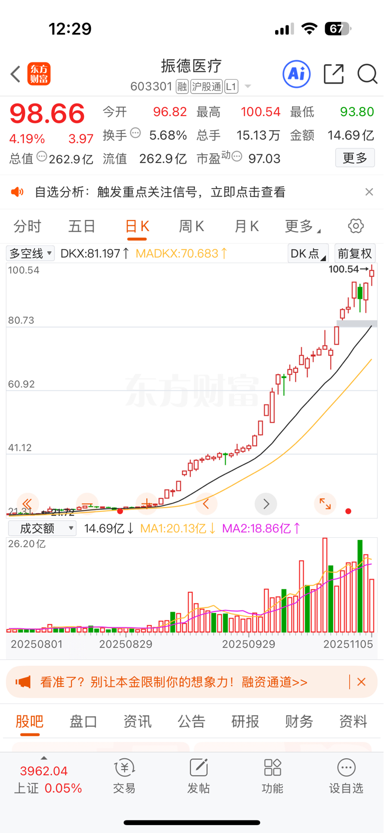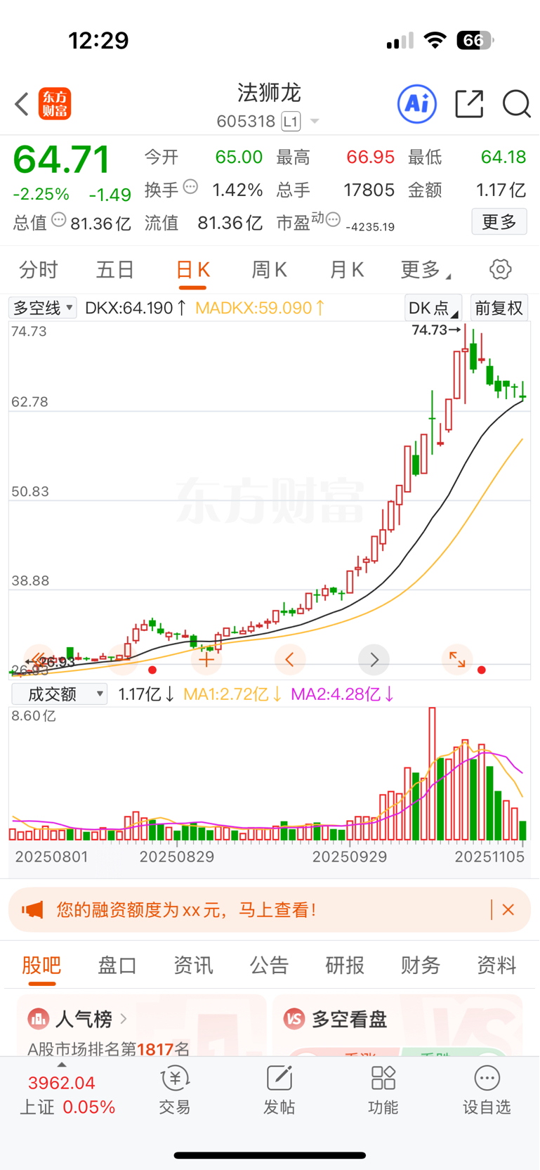 $振德医疗(SH603301)$$法狮龙(SH605318)$后悔在65卖了振德,买了法师,没那命