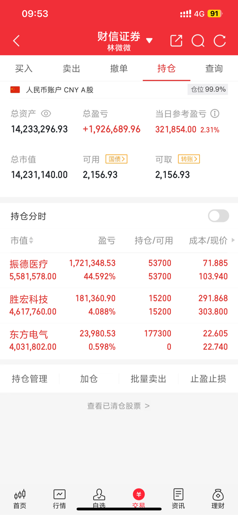 继续持有 $振德医疗(SH603301)$ $胜宏科技(SZ300476)$ 这两支具备增长潜力,我满怀期待,相信随着后续市场的发展,达成盈利目标。