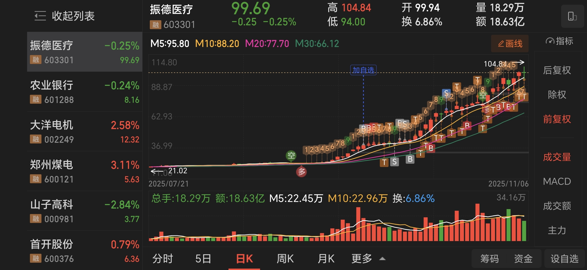 $振德医疗(SH603301)$ 感觉明天很关键,如果继续沿着五日线,那就继续做,如果破了五日线,明天就真的要走了!好喜欢这支票,真的有点舍不得,希望稳稳走到年底多好!#炒股日记#