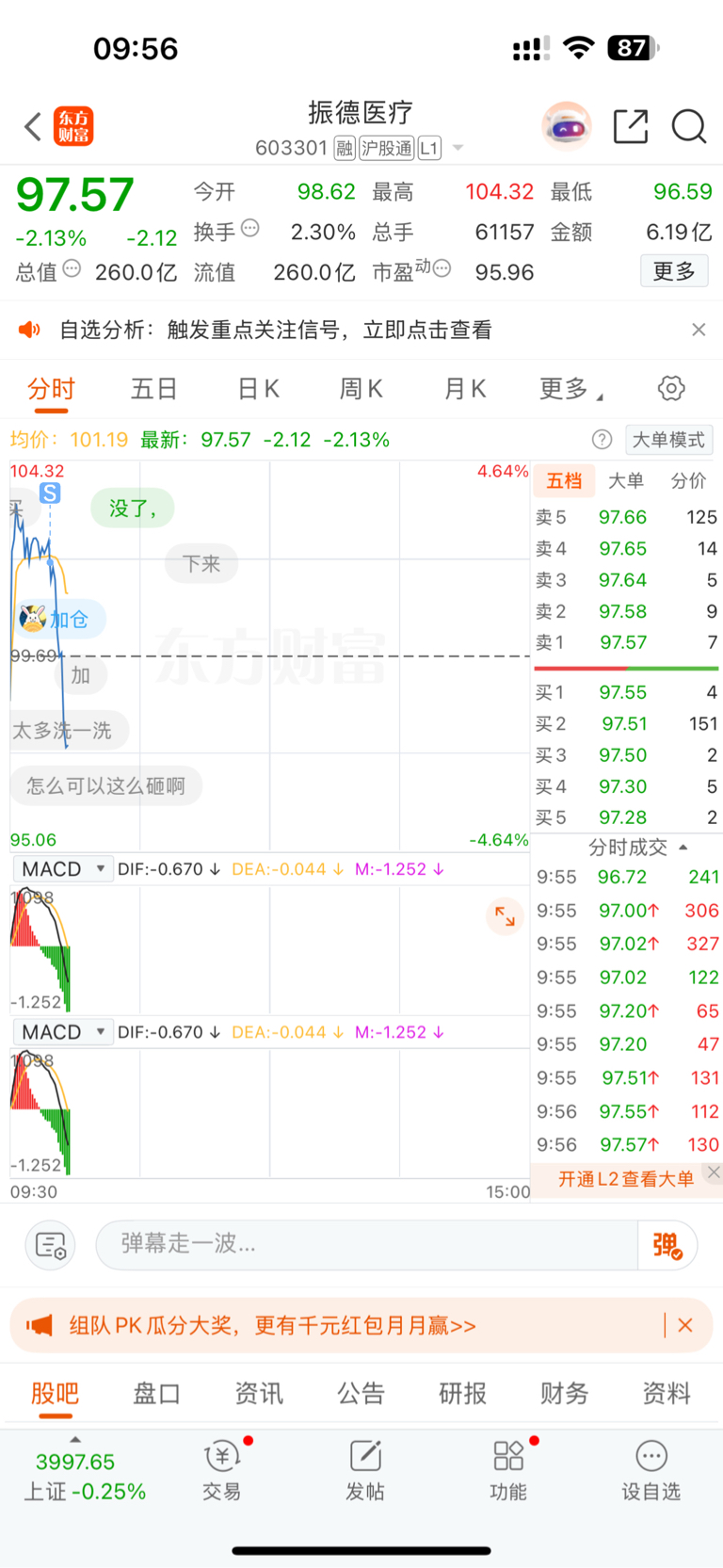 振德医疗止盈出局斩获少许收益,恭喜同车股友们。