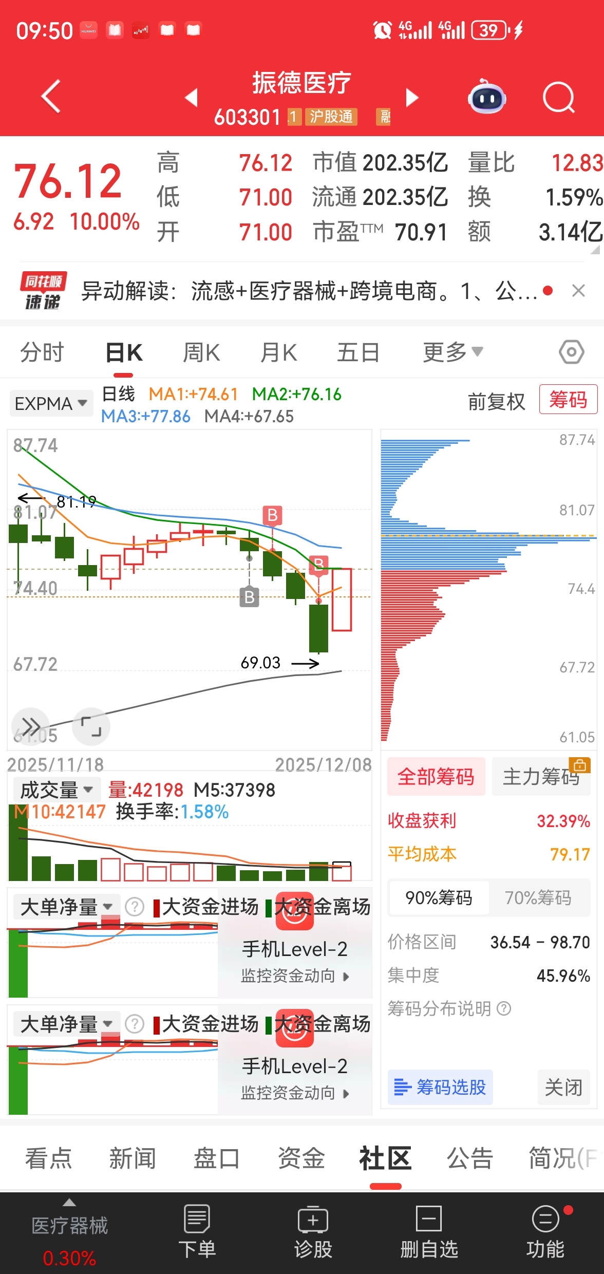 $振德医疗(SH603301)$ 人人忍痛割肉的时候,我挺住了压力,连补三次,谢谢庄佬