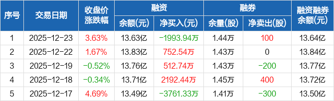 振德医疗:融资净偿还1993.94万元,融资余额13.63亿元(12-23)